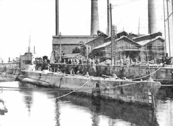 ПЛ Ro-31 у причальной стенки верфи флота в Куре. лето 1929 г.