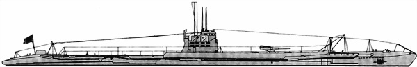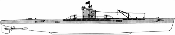 1. ЦГБ; 2. Дифферентные цистерны; 3. Топливные танки; 4. Торпедозаместительная цистерна; 5. Уравнительная цистерна; 6. Цистерны чистых масел; 7. Цистерна циркуляционных масел; 8. Цистерна пресной воды; 9. 533-мм ТА; 10. Торпедный отсек; 11. Торпедопогрузочный люк; 12. Носовая станция ВВД; 13. Носовой горизонтальный руль; 14. Привод носового горизонтального руля; 15. Якорный шпиль и его машинка; 16. Деррик-кран; 17. 25-мм зенитные автоматы; 18. Боевая рубка; 19. Репитер гирокомпаса; 20. Жилой отсек; 21. Центральный отсек (аккумуляторный); 22. АБ; 23. Центральный пост; 24. Шахта гирокомпаса; 25. Погреб артиллерийского боезапаса; 26. Центральный пост управления рулями; 27. Шахта общесудовой вентиляции; 28. Шахта устройства работы дизелей под водой ("шноркель"); 29. Ходовой мостик; 30. Радиорубка; 31. Дизель; 32. ГЭД; 33. Разобщительная муфта; 34. Дейдвудный сальник; 35. Упорный подшипник; 36. Компрессоры системы ВВД; 37. Щит управления ГЭД; 38. Привод кормовых горизонтальных рулей; 39. Машинка приводов кормовых горизонтальных рулей; 40. Привод вертикальиого руля; 41. Машинка привода вертикального руля