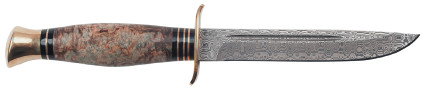 Как упоминалось выше, выпускаются сувенирные и подарочные варианты «финки НКВД», не попадающие под категорию холодного оружия. На фото изображен подарочный вариант знаменитой «финки» с клинком, выполненным из шведского дамаска. Рукоять ножа изготовлена из карельской березы со вставками