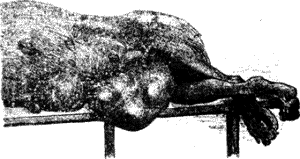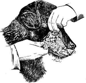 Бородавки представляют из себя опухоли величиной от чечевицы до лесного ореха, поверхность их, обыкновенно, снабжена роговым покровом, эти опухоли сходны с бородавками людей. (Рис. 72). Они могут быть у собак всех возрастов и локализируются на голове, спине и других местах. Не подлежит никакому сомнению, что у молодых собак они исчезают сами собой.