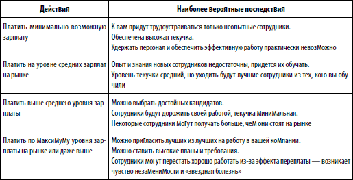 Таблица 4.12. Последствия проведения той или иной политики в области оплаты труда работников