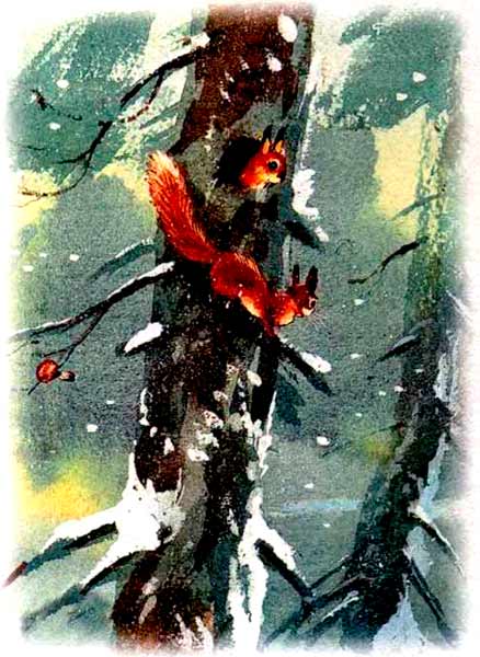 Как хорошо бывает, когда утихнет метель и небо разъяснится, тогда хочется побродить в лесу. Всё кругом — и кусты и деревья — завалено снегом. Под его тяжестью молодые деревца согнулись в дугу, белыми арками перекинулись через тропинку. Под такой аркой надо пробираться с опаской, чтобы не задеть за неё, иначе на вас обрушится вся масса снега.
