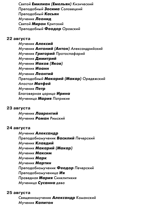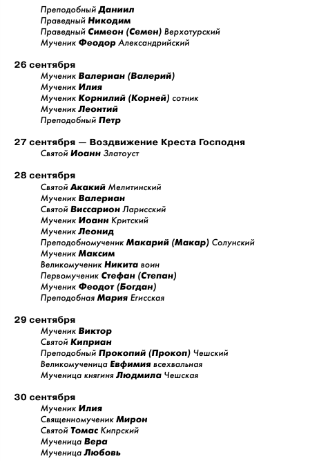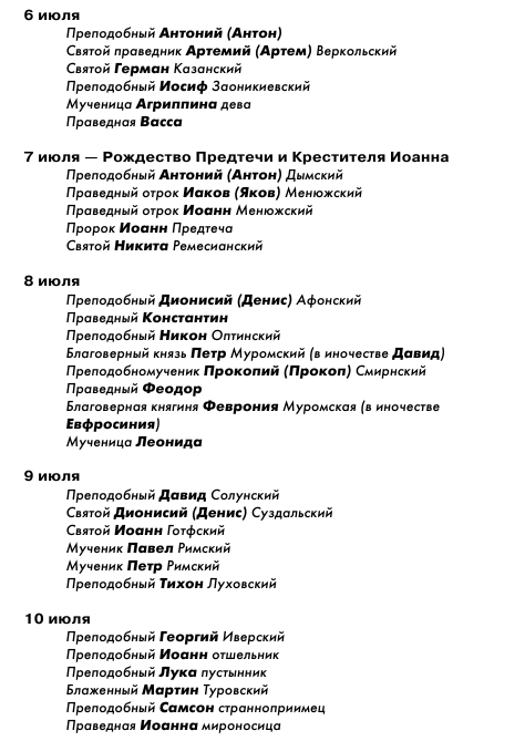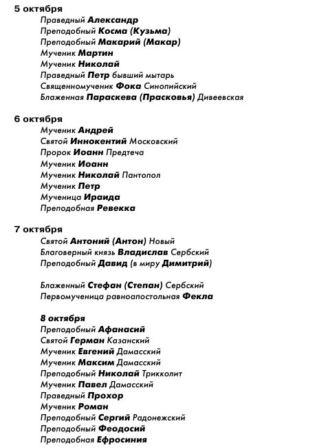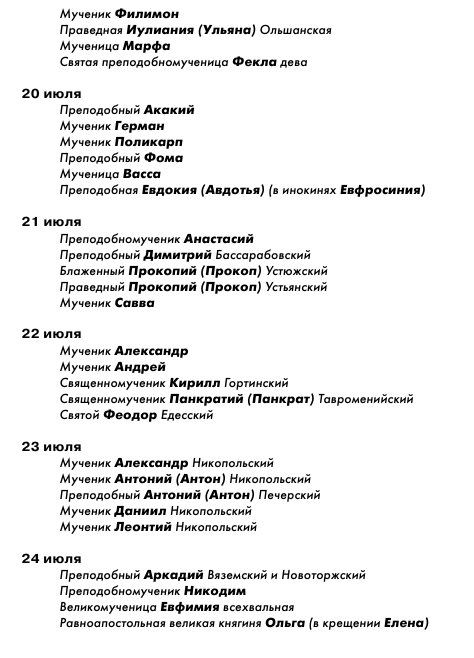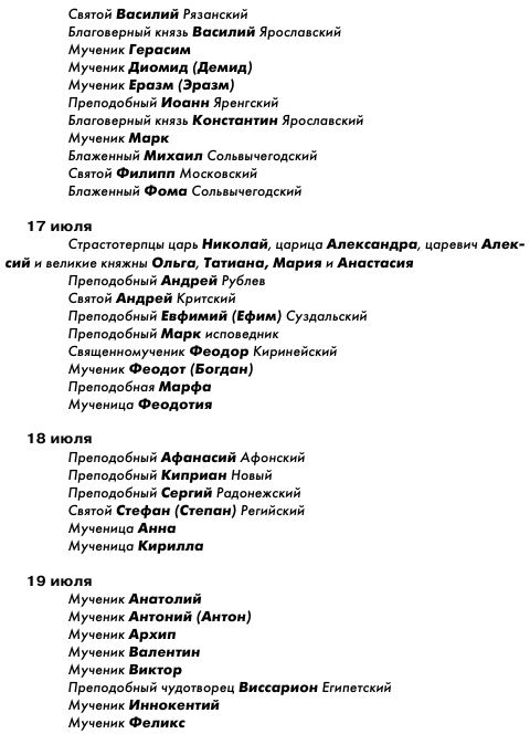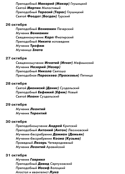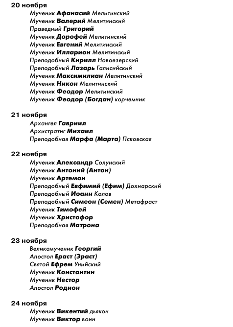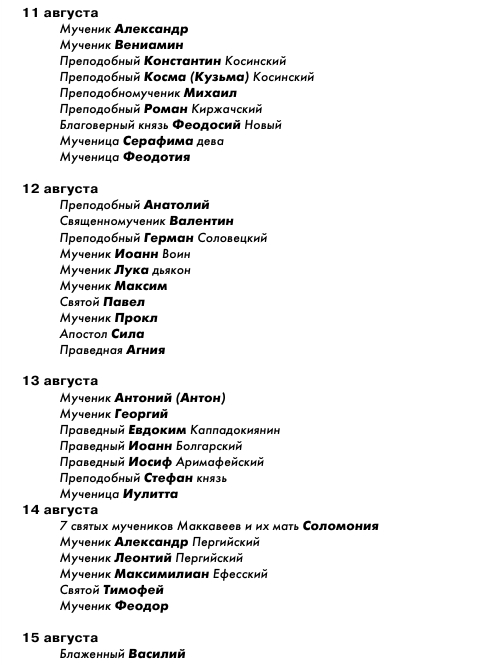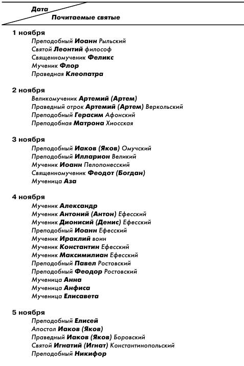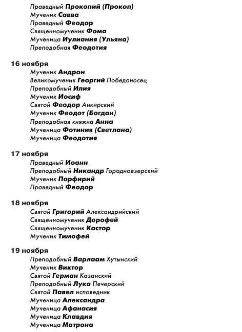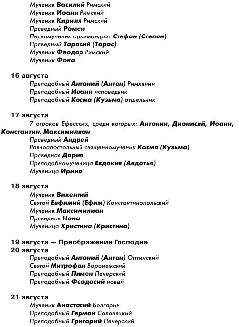 Ниже приводится перевод некоторых наиболее ходовых православных имен, встречающихся в святцах: