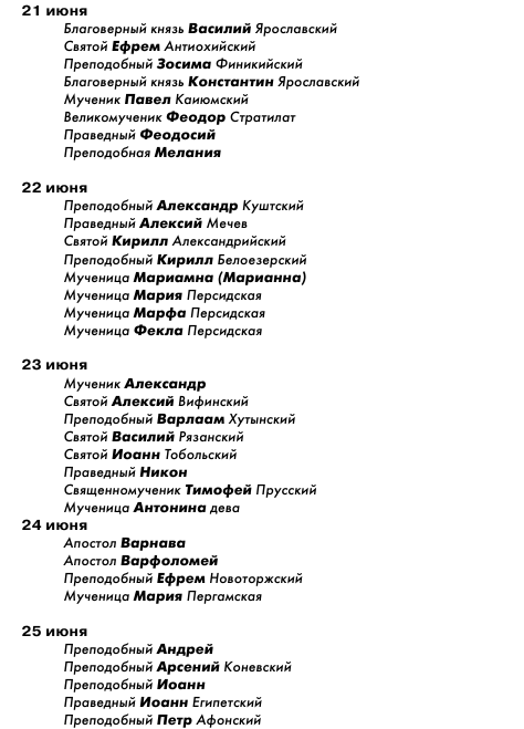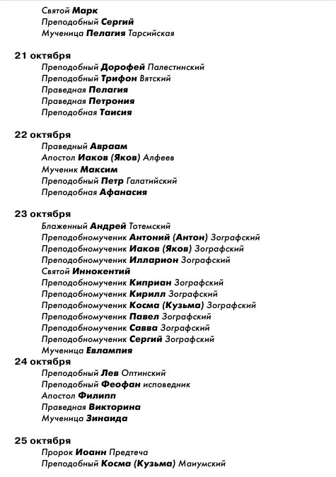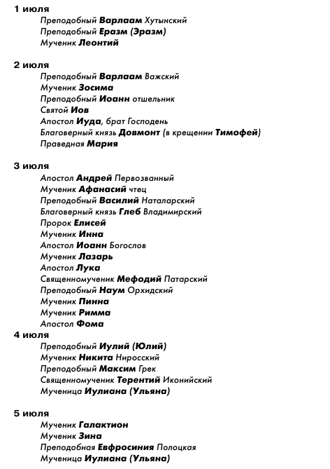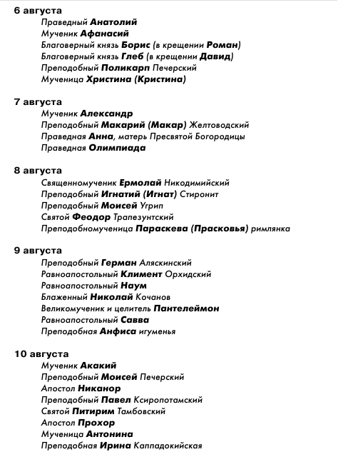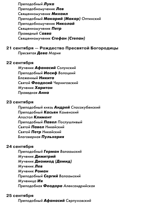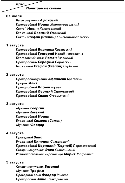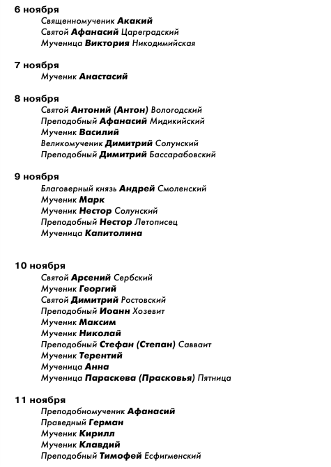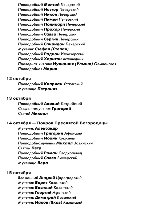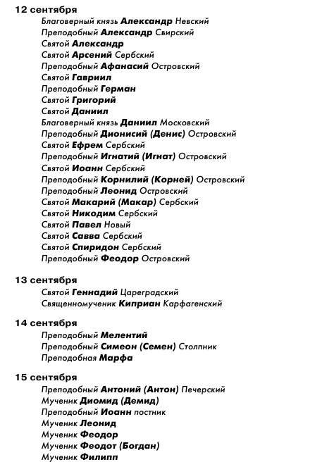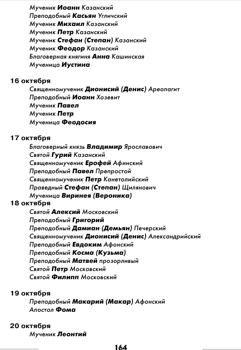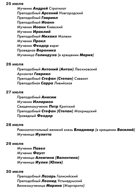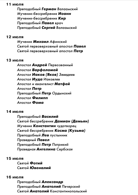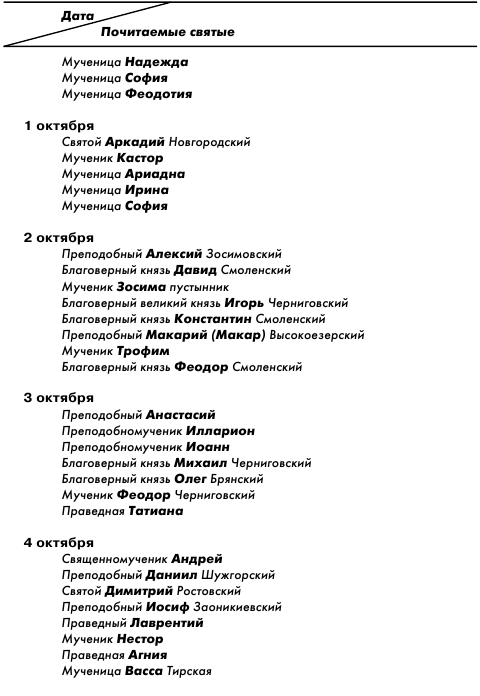 Ниже приводится перевод некоторых наиболее ходовых православных имен, встречающихся в святцах: