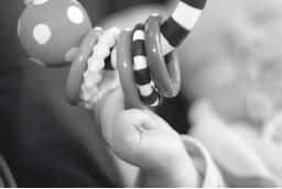 Мягкий тряпичный браслет с колокольчиком или бубенчиком отлично стимулирует слуховое сосредоточение и развивает координацию движений. Такой браслет надевают младенцу на запястье – то на правое, то на левое. Когда ребенок двигает ручками, колокольчик позвякивает. Эта игрушка подходит малышу в возрасте около 3 месяцев, но предлагать ее можно уже с двух.