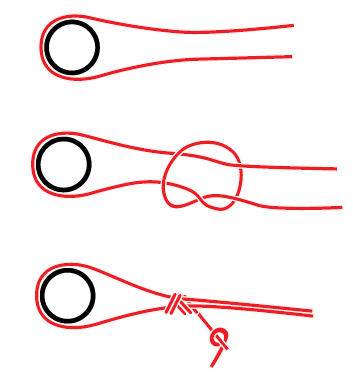 2. Ходовым концом сформировать вокруг корневого конца простой узел и затянуть его.