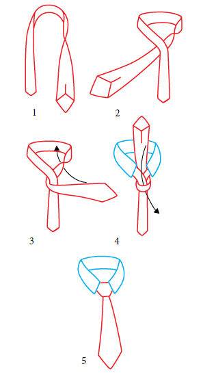 1. Расположить галстук лицевой стороной наружу. Перекрестить концы галстука таким образом, чтобы узкий конец находился снизу широкого и был направлен вправо.
