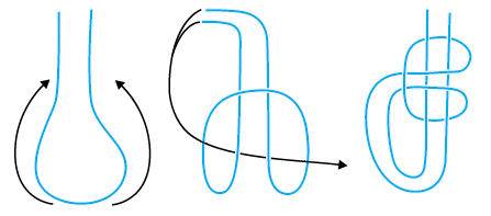 1. Уложить ходовой конец троса в форме зигзага, так, чтобы получились две встречные открытые петли.
