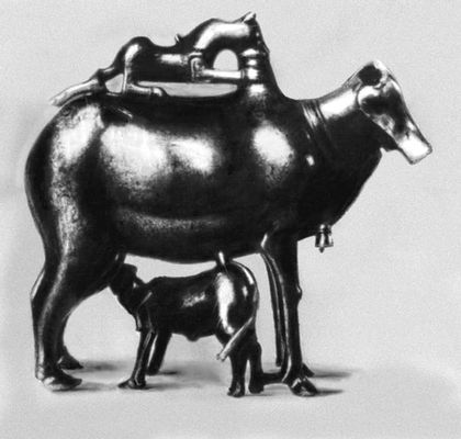 Средневековое прикладное искусство. Бронзовый водолей из Ширвана. 1206. Эрмитаж. Ленинград.
