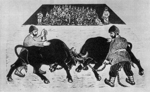 А. А. Рзакулиев. «Бой буйволов». Линогравюра. 1962.