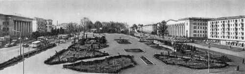Пересечение проспекта Кирова с улицей 28 апреля. Справа — кинотеатр «Низами» (1934, архитекторы С. А. Дадашев, М. А. Усейнов).