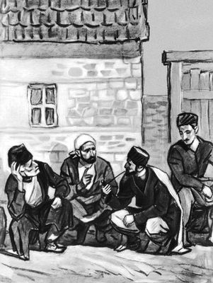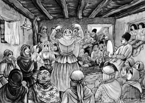 А. А. Азимзаде. «Свадьба у бедных». Акварель, тушь. 1931. Азербайджанский музей искусств им. Р. Мустафаева. Баку.