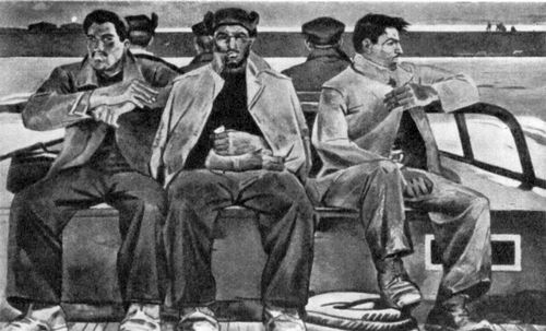Т. Т. Салахов. «Ремонтники». 1961. Азербайджанский музей искусств им. Р. Мустафаева. Баку.