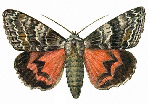 Бабочки. Ленточница малиновая (Catocala sponsa) — Ср. и Юж. Европа, М. Азия.