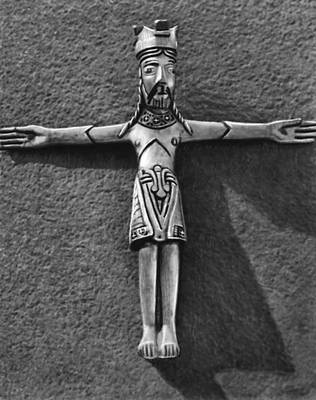 «Распятие». Дерево, облицовка медными позолоченными пластинами. 1050—1100. Национальный музей. Копенгаген.