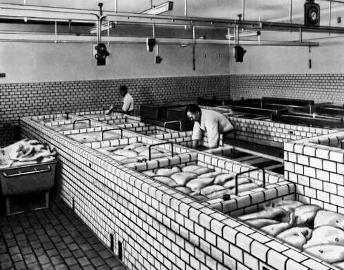 Дания. Соление окороков на беконном предприятии в г. Вайле.