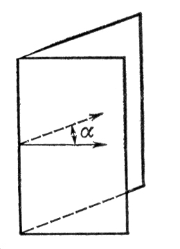 Двугранный у'гол, фигура в пространстве, образованная двумя полуплоскостями, исходящими из одной прямой, а также часть пространства, ограниченная этими полуплоскостями (рис. ). Полуплоскости гранями Д. у., а их общая прямая — ребром. Д. у. измеряется линейным углом, т.е. углом ее между двумя перпендикулярами к ребру, выходящими из одной точки и лежащими в разных гранях, или, иначе, углом, образованным пересечением Д. у. плоскостью, перпендикулярной к ребру.