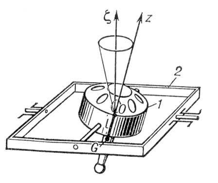 Рис. 2. Принципиальная схема гиромаятника: 1 — гирокамера с ротором; 2 — наружное карданово кольцо.