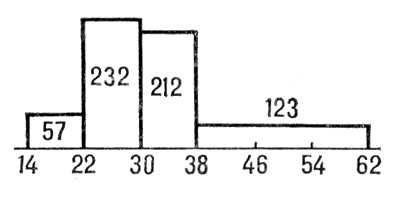 На горизонтальной оси откладываются границы групп, на которые стволы разбиты по их диаметру, и на отрезке, соответствующем каждой группе, строится как на основании прямоугольник с площадью, пропорциональной числу стволов, попавших в данную группу (рис. 1).