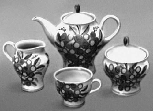 Русская и советская художественная промышленность. В. Ф. Колосов. Сервиз «Виноград». Фарфор. 1967.