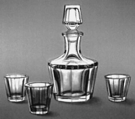 Русская и советская художественная промышленность. Б. А. Смирнов. Прибор для водки «Крепыш». Хрусталь. 1949.