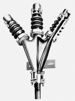 Рис. 1в. Кабельные муфты. Соединительная высоковольтная на 110—500 кв с искровым промежутком.