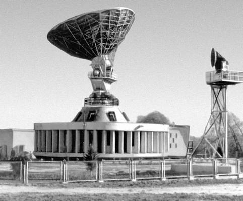 Станции «О.» размещают в типовых круглых в плане железобетонных сооружениях, служащих одновременно опорой антенной системы (рис.). В центральном зале станции сосредоточена вся приёмная аппаратура, аппаратура наведения на спутник и соединительные линии. В смежных помещениях располагаются система вентиляции и кондиционирования воздуха, аппаратура электропривода антенны, оборудование электропитания и пр. Антенна с параболическим отражателем диаметром 12 м установлена на опорно-поворотном устройстве и приводами перемещается по азимуту и углу места, сопровождая спутник с высокой точностью (до нескольких угловых минут). Управление слежением за спутником осуществляется либо автоматически (по телевизионному сигналу со спутника или программным устройством), либо вручную. Антенна способна нормально работать в суровых климатических условиях Крайнего Севера, Сибири, Дальнего Востока и Средней