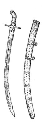 Са'бля (венг. szablya, от szabni — резать), вид рубящего холодного оружия. Имеется много различных типов С. Появилась на Востоке в 6—7 вв.; в русских летописях упоминается с 10 в. Состоит из стального клинка и рукояти (эфеса), вкладывается в ножны. Клинок — кривой, с лезвием на выпуклой стороне и обухом на вогнутой, имеет остриё (иногда долы) и хвостовик для насадки рукояти, длина 800—900 мм, ширина 30—35 мм. Эффективность С. определяется таким сочетанием кривизны клинка и положения центра тяжести, при котором уменьшается угол резания и увеличивается сила удара. Клинки восточных С., предназначенных только для рубки, имеют стрелу изгиба до 100 мм, европейских, в том числе поздних русских, предназначенных для рубки и укола, — 10 мм. Рукояти имеют различное устройство — с крестовинами и перекрестиями, с 1—3 дужками. Ножны бывают деревянные, обтянутые кожей, сафьяном или бархатом, украшенные металлическими накладками, часто серебром, золотом, а иногда драгоценными камнями; в 19—20 вв. ножны С. — металлические, никелированные, хромированные или воронёные. В России в 16 в. С. были вооружены конные и пешие стрельцы. С 18 в. в европейских и русских армиях С. состояла на вооружении лёгкой конницы и командного состава всех родов войск. В 1881 в русской армии С. была заменена шашкой и сохранялась лишь в гвардии как парадное оружие. В СССР в 1940 были введены парадные С. для генералов, в 1949 заменены кортиками.