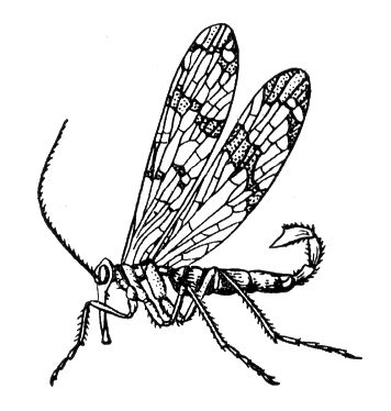 Скорпио'новы му'хи, скорпионницы (Mecoptera), отряд насекомых с полным превращением. Тело длиной до 3 см. Крылья (2 пары) одинаковые сетчатые прозрачные или с тёмными пятнами. Голова клювообразно вытянута, ротовой аппарат — грызущий. Задний конец брюшка у некоторых С. м. со вздутием, напоминающим конец брюшка скорпиона (отсюда название). Куколка свободная. Около 300 видов, распространены повсеместно, обычно немногочисленны; в СССР свыше 10 видов. В ископаемом состоянии известны с перми. Собственно С. м. (сем. Panorpidae) — питаются мёртвыми насекомыми; личинки их похожи на гусениц, но имеют 8 пар брюшных ног. Биттаки (семейство Bittacidae) — похожи на долгоножек , но с 2 парами крыльев; хищники; личинки их тоже напоминают гусениц. О С. м. семейства Boreidae см. Ледничники .