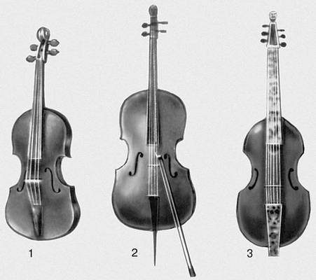 1. Скрипка. 2. Виолончель. 3. Виола да гамба.