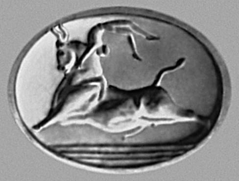 Скульптура. «Ритуальные игры с быком». Оттиск печати (с о. Крит). Около 1500 до н. э. Национальный археологический музей. Афины.