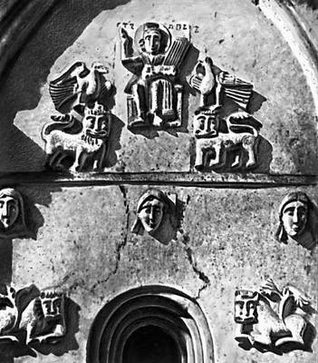 Скульптура. «Царь Давид среди зверей и птиц». Убранство западного фасада церкви Покрова на Нерли. Камень. 1165.