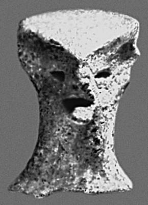 Скульптура. Фрагмент статуэтки лендьельской культуры. Глина. Энеолит. Музей. Пьештяни (Чехословакия).