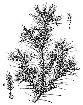 Трагакант войлочноветвистый: а — ветвь цветущего растения; б — лист с прилистником; в — цветок.