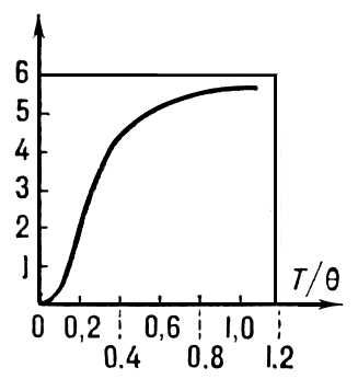 Рис. 1. Теплоёмкость твёрдого тела (в дебаевском приближении) Сv в кал/мольxград.