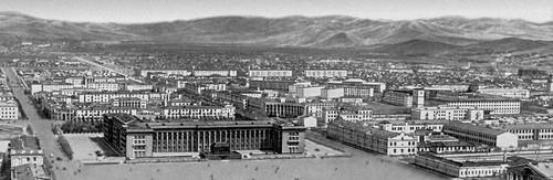 Жилые дома (на первом плане) в Улан-Баторе. 1969. Архитекторы А. Б. Гурков, М. А. Зильберт, С. Е. Рюмина, М. А. Свирская.