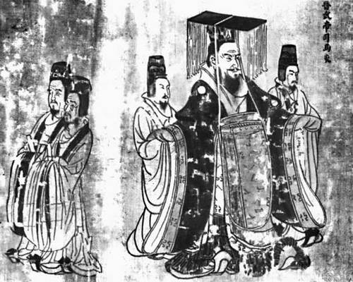 Янь Ли-бэнь. «Тринадцать императоров». Тушь и водяные краски на шелку. Музей изящных искусств. Бостон. Фрагмент.