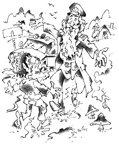 — Фёдор, зайчик, метнись к двери! — и, вспомнив о том, что его перебили, но не помня, на каком именно моменте, начал грызть перо. Немного поёрзав, он поймал мысль «за хвост» и, удовлетворённо крякнув, продолжил: «Особо следует отметить немотивированную склонность к обжорству, а также к пьянству и курению неустановленного наркотического средства растительного происхождения. Полагаю, наиболее целесообразным является использование карапузов на плантациях в качестве неквалифицированной рабочей силы. Нрав имеют весёлый, легко приручаются. Подвижны. Хорошо переносят непогоду. Могут быть использованы в службе секретной фельдъегерской доставки». — В этот самый момент в дверь постучали с прежней настойчивостью