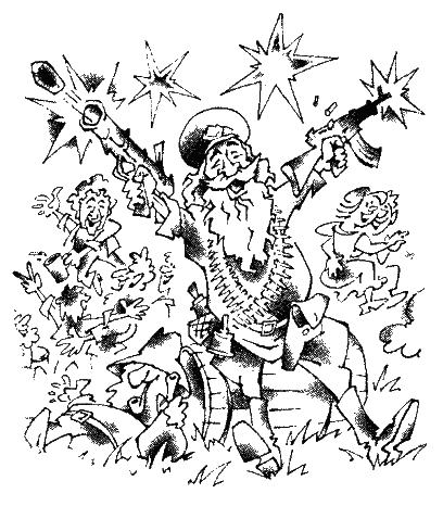 — Щас посмотрим, какой у тебя план, Пендальф, — подначил Бульба, но Пендальф только усмехнулся в ответ. Карапуз подкурил, глубоко затянулся, в трубке весело защёлкало — настроение повышалось с каждой секундой… Бульба решил выпендриться перед Пендальфом и, прежде чем передать трубку, запустил в вечернее небо облачко дыма в виде пацифистского знака — такое вот настроение было у него сегодня. Пендальф снисходительно поглядел на товарища и отправил в погоню за первым облачком своё — двуглавого орла. Естественно, имперские мотивы одержали убедительную победу. Впрочем, Бульбу уже мало что могло расстроить, поэтому он удовлетворённо хмыкнул: