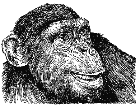 Самый большой самец-шимпанзе, ростом метр шестьдесят, впал в бешенство, как только мы переступили порог павильона. Что он только не начал вытворять! Его лицо исказилось, превратившись в сатанинскую маску, его дикий визг нас буквально оглушил, он схватил какую-то деревяшку и разнес ее в щепки о железную решетку! Однако служителя такой припадок отнюдь не вывел из состояния равновесия. Он преспокойно направился к клетке, уговорил беснующегося скандалиста протянуть ему руку и вложил в нее банан. Тот повиновался, однако не выпускал нас, возмутителей спокойствия, ни на секунду из поля зрения.