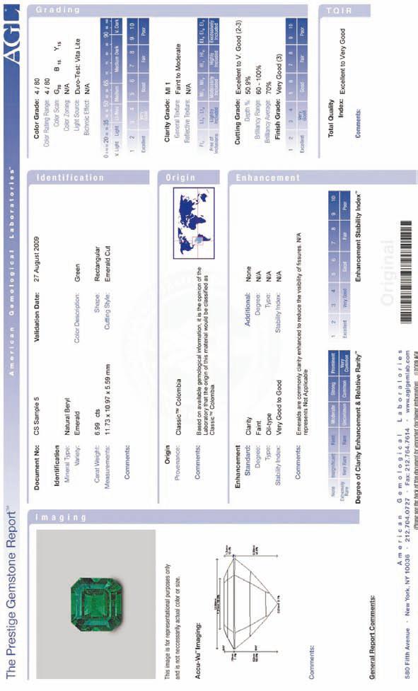 Образец оценки изумруда из лаборатории American Gemological Laboratories