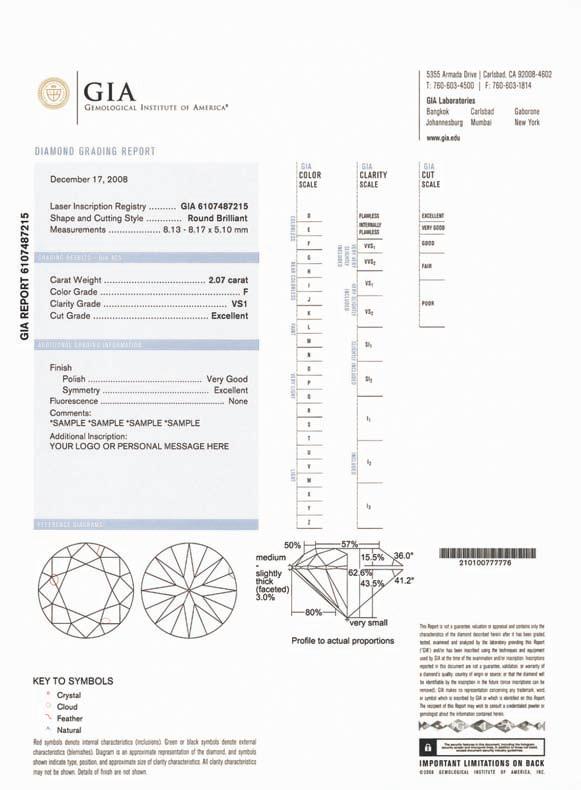 Образец оценки бриллианта GIA. © Gemological Institute of America. Напечатано с разрешения Института