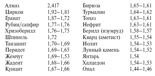 Информация для данных таблиц взята из изданий «Gems» Роберта Уэстера, «Gemstones of the World» Роберта Шумана и «Handbook of Gem Identification» Ричарда Т. Лид-дикоата (мл.). «Счастливые камни» были утверждены в 1912 г. Ассоциацией the American National Retail Jewelers’ Association: