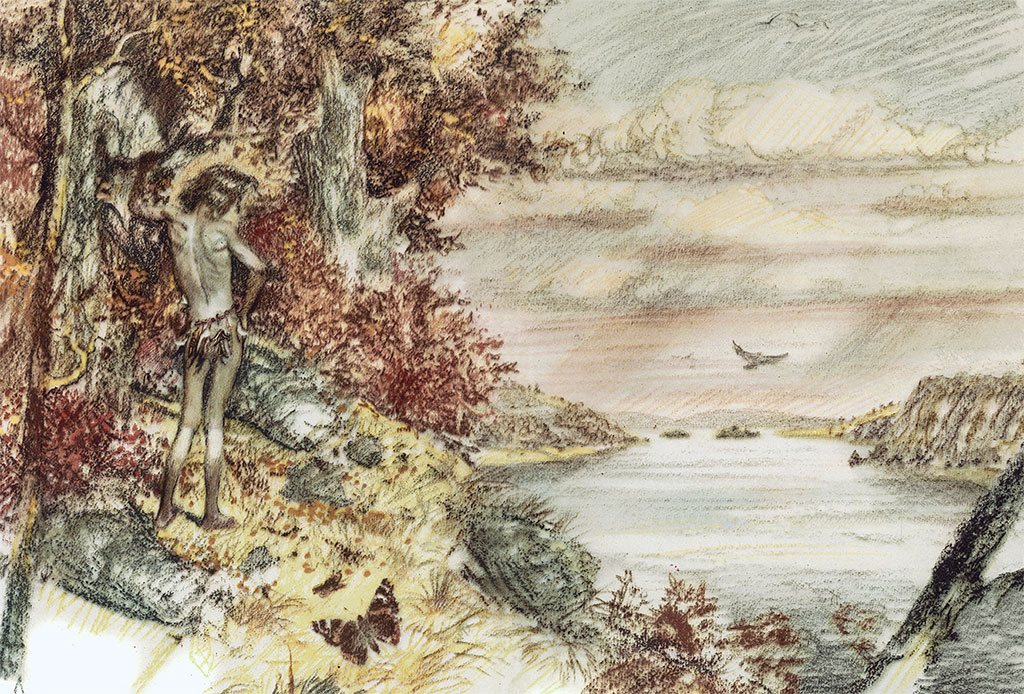 Все время он проводил в лесу. Дневал, а то и ночевал возле своих птичьих силков. Старейшина созвал членов рода на совет. Но под дубом собрались не все мужчины – там опять недоставало Следопыта. Напрасно его жена, красавица Малиновка, обкладывала горячими камнями горшок с жидкой кашей, напрасно варила в меду белочек – Следопыт к ужину так и не пришел. Над кровлями всех домишек поднимались столбы серого дыма, повсюду разносился аромат жареного мяса, и только Следопытова хижина стояла без дичи, а ненужный вертел валялся в углу. И это притом что всему роду известно: Следопыт – отличный охотник, который может добыть в лесу любую птицу, любого зверя.