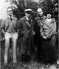 Булгаков среди пречистенцев. Слева направо: С. С. Топленинов, М. А. Булгаков, Н, Н. Лямин, Л. Е. Белозерская.