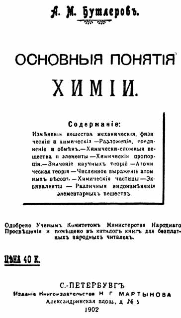 Титульный лист книги А. М. Бутлерова «Основные понятия химии».