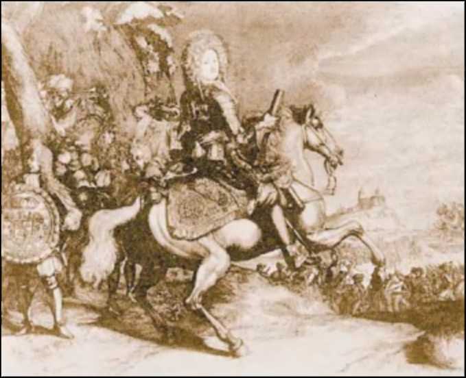 А. Д. Меншиков на фоне сражения при Калише. Около 1707 года.