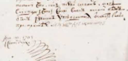 Фрагмент письма А. Д. Меншикова Петру I. Здесь подпись автора письма выглядит бессмысленным росчерком. Июль 1703 года.