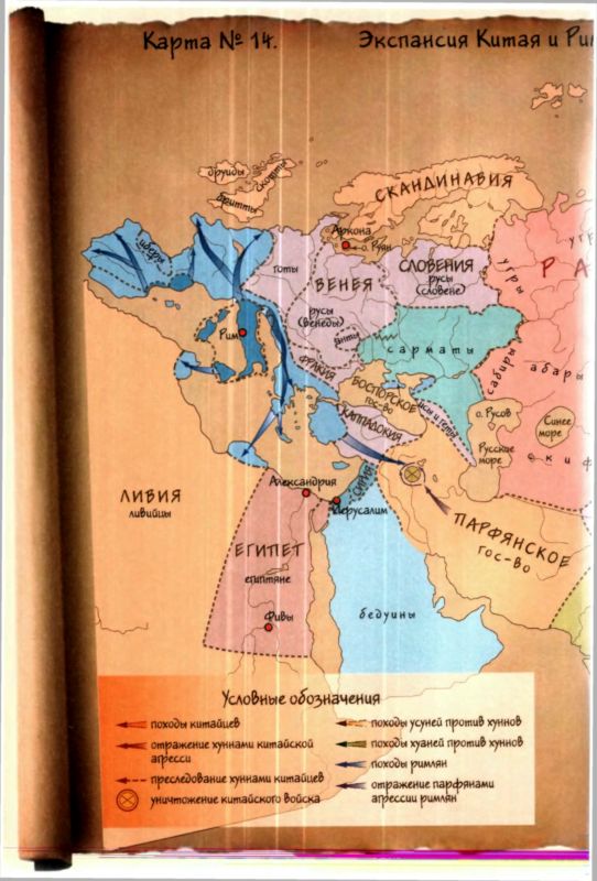 Карта № 17. Походы гуннского войска на запад и табгачей в Китай.