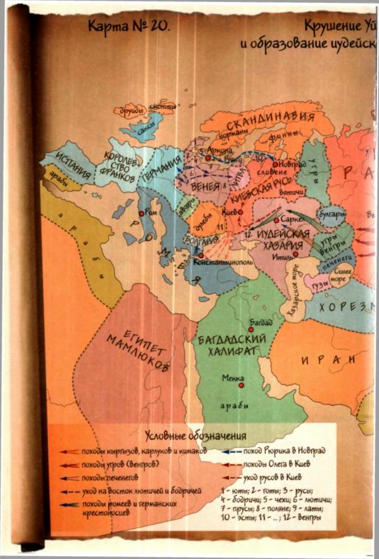 Карта № 20. Крушение Уйгурского государства и образование иудейской Хазарии.